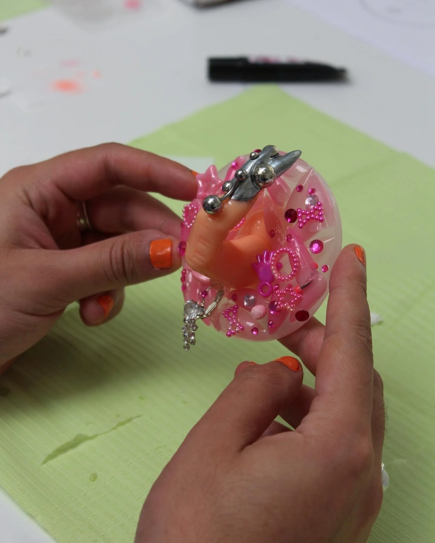 a través del diseño de estos artefactos, los asistentes decoraban un objeto con técnicas de manicura (comúnmente limitadas a los estudios de uñas, estéticas y espacios particulares) y buscaban formas de expandir nuestras metodologías creativas, buscando procesos alternos de creación involucrando la investigación de campo y la recuperación de elementos locales específicos.