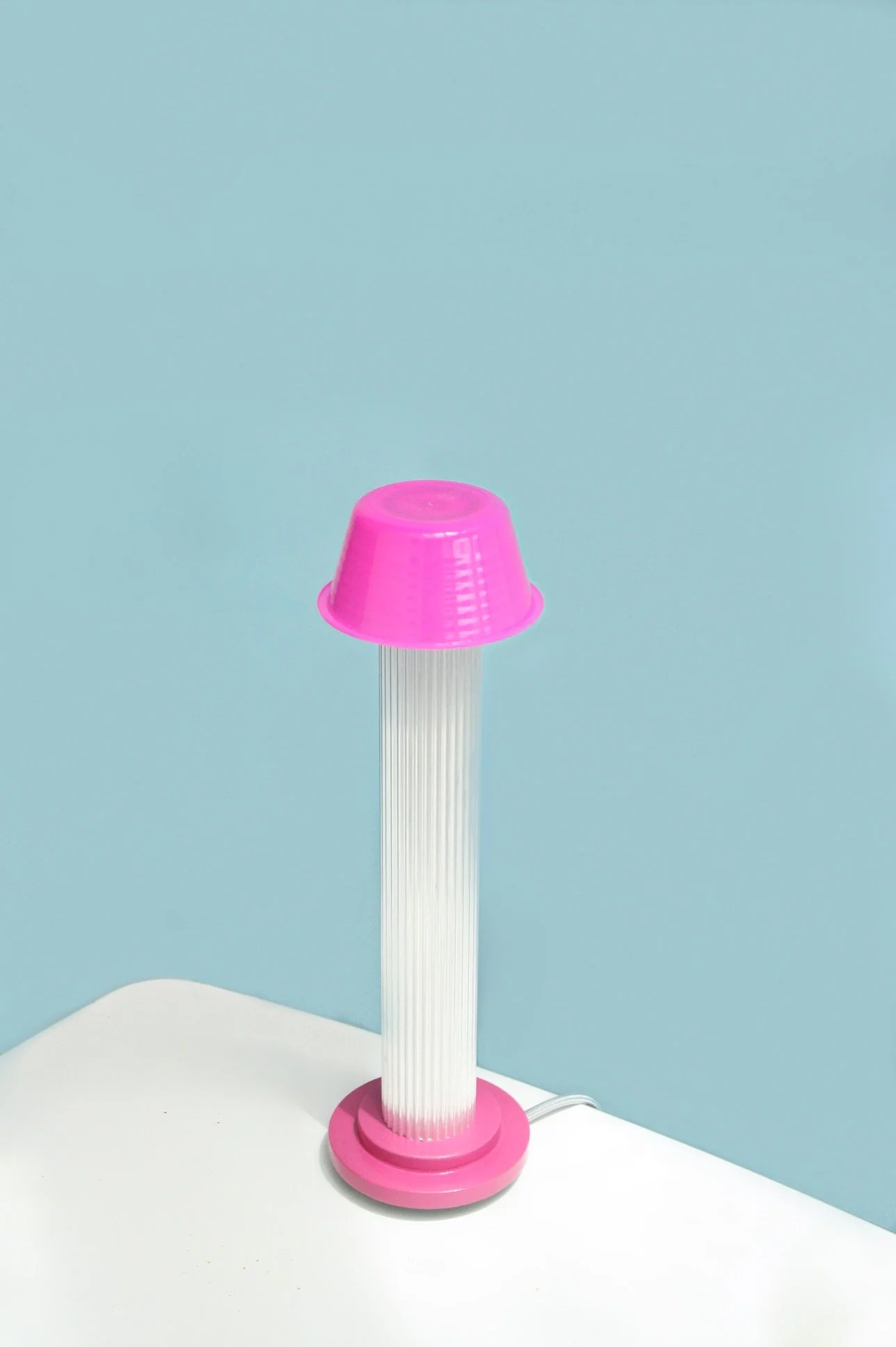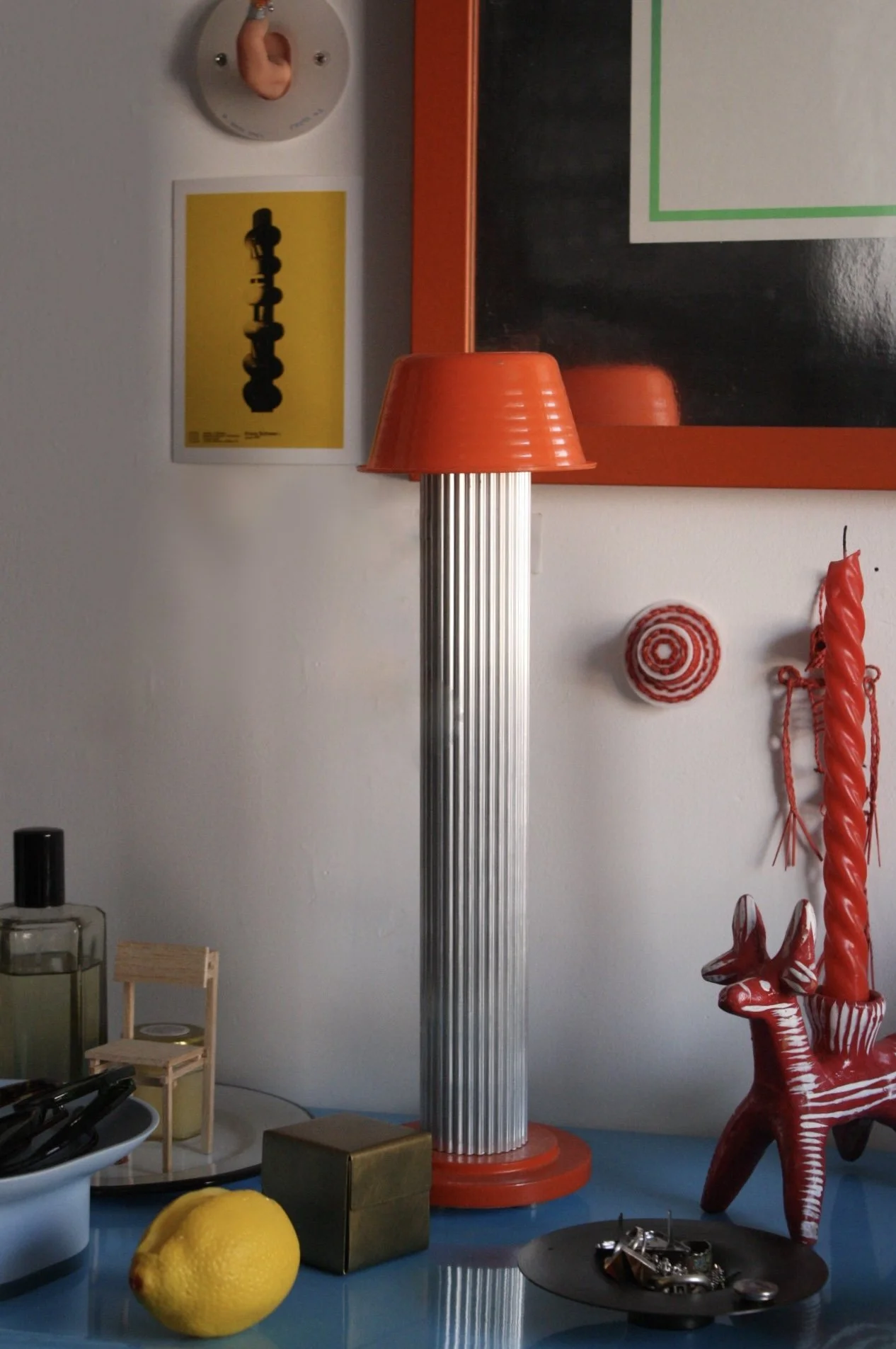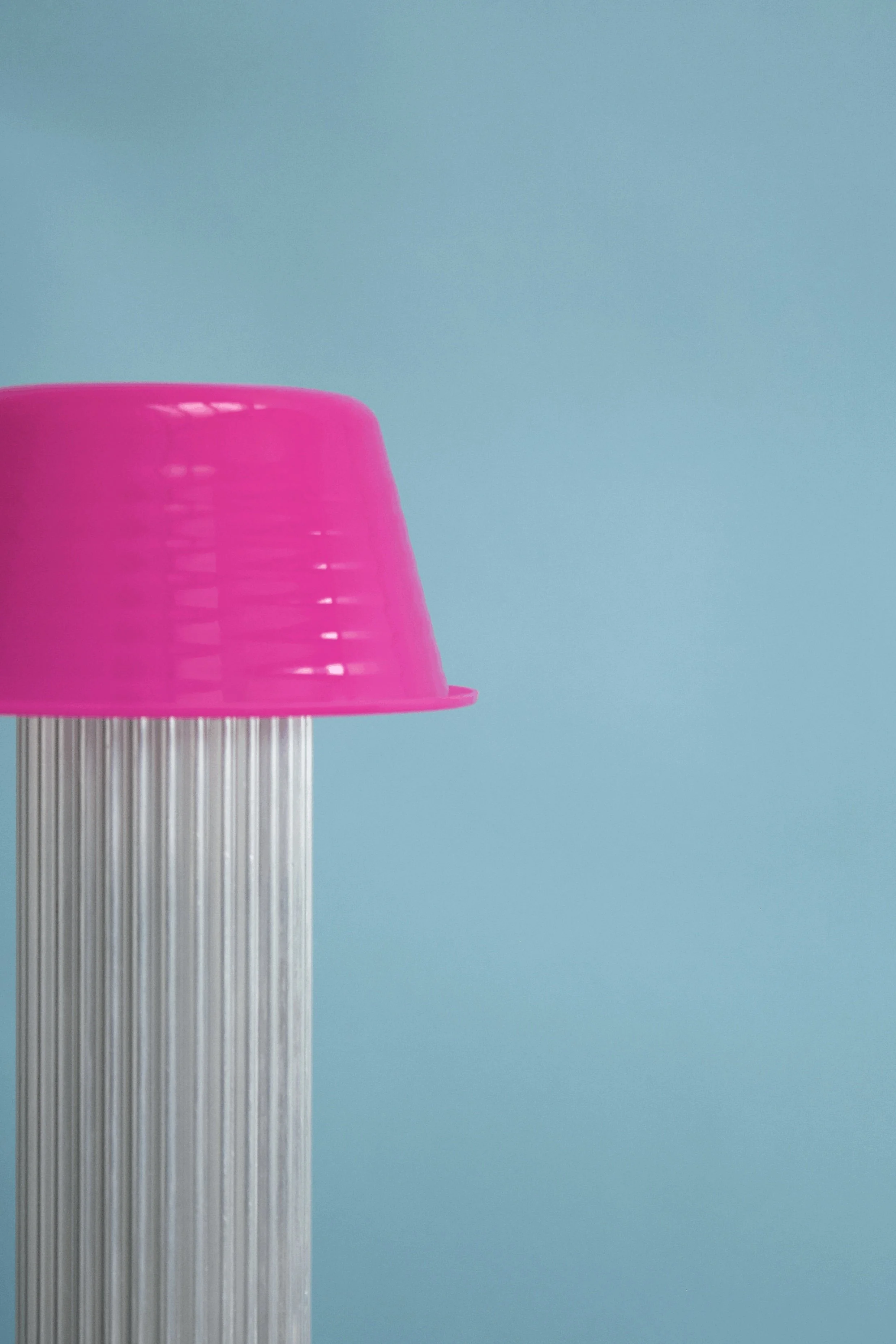 the jícara lamp is a table lamp that uses a generic plastic gourd in bright colors, collected in markets in mexico city, as a lampshade. The gourd, restating its original function, adds a sarcastic and functional touch to the space where it interacts. when it passes through the plastic, the light generates a colorful and dim atmosphere.