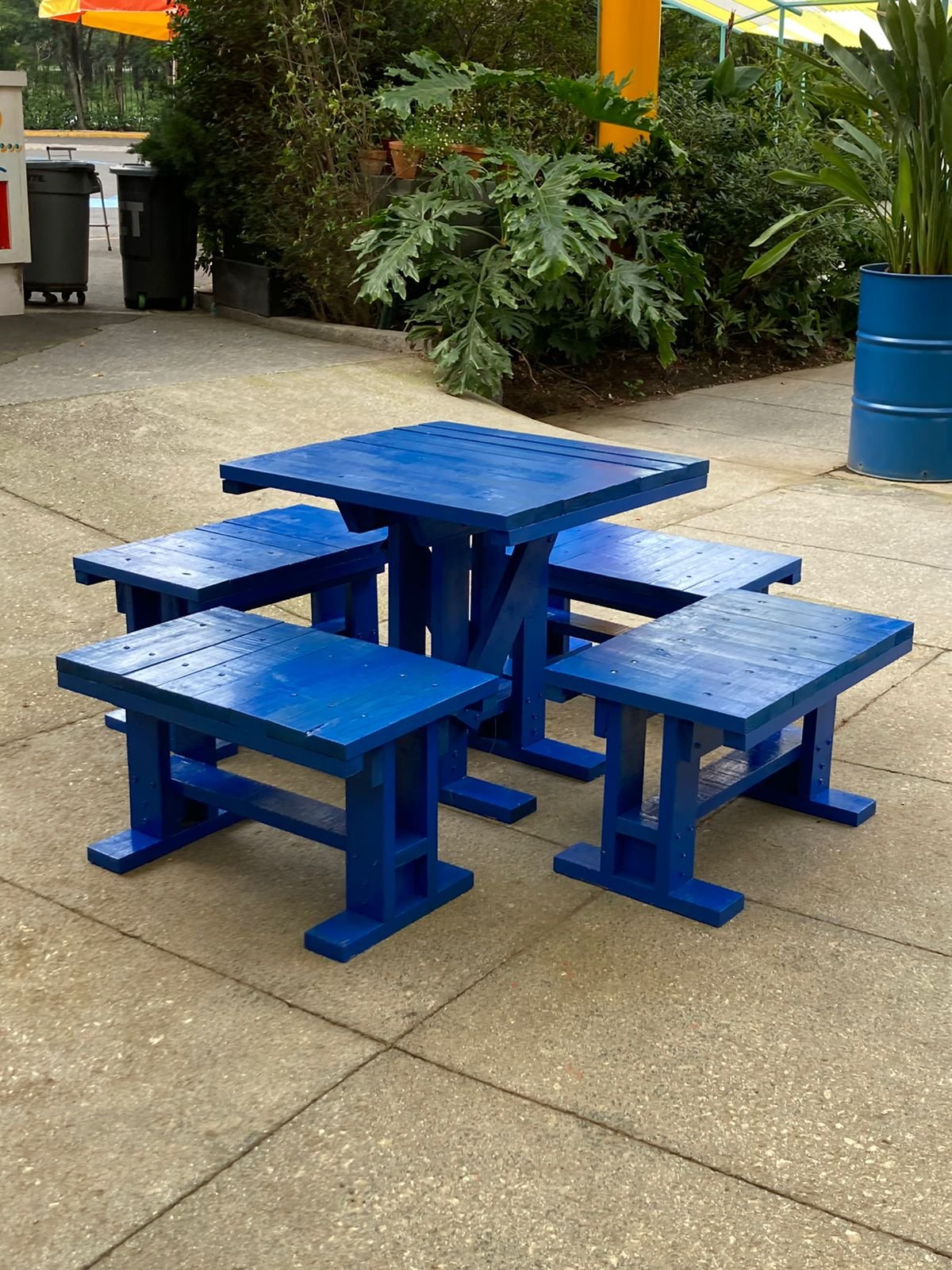 producción de mobiliario en madera de pino para fabien cappello / espacio público lago algo.
