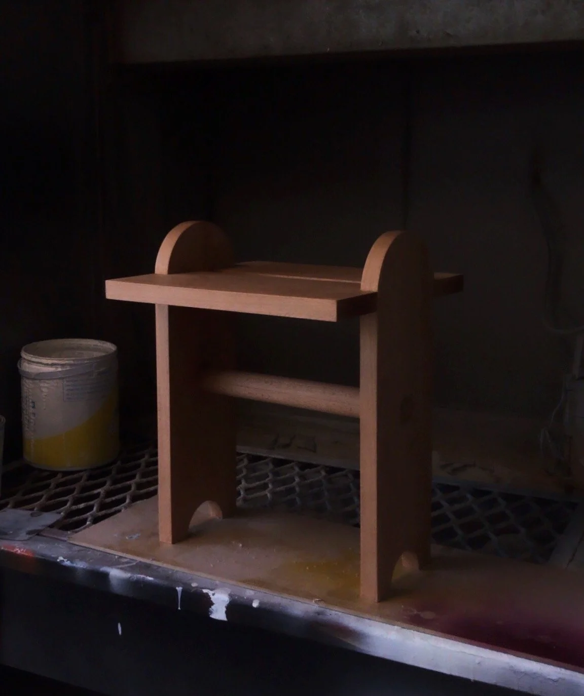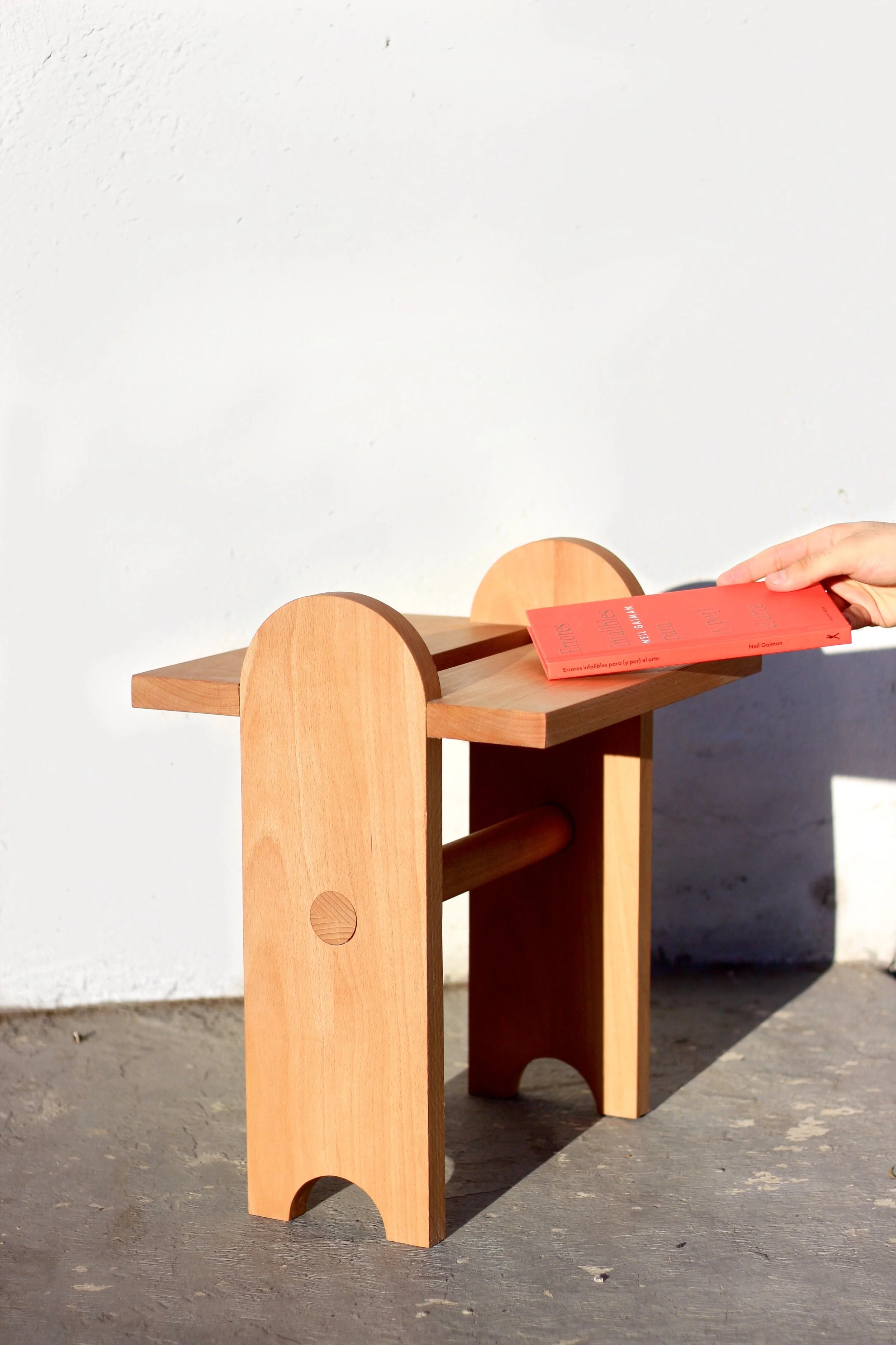 semi seeks to preserve the purity of the material by creating a clean contrast between round and square shapes which translate into a small side table. It’s inspired by the benches found in the mexican butcher shops that are part of mexico city’s vernacular furniture scene. the crossbar works not only as a light and playful visual accent, but also as functional joinery and as a useful handle to carry it with. semi is produced under the finest cabinetmaking techniques, and is made entirely out of solid beech wood.